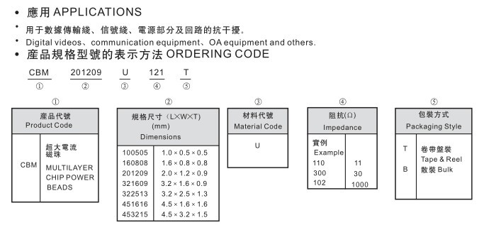 CBM片式磁珠高阻抗,无引线,符合EIA标准