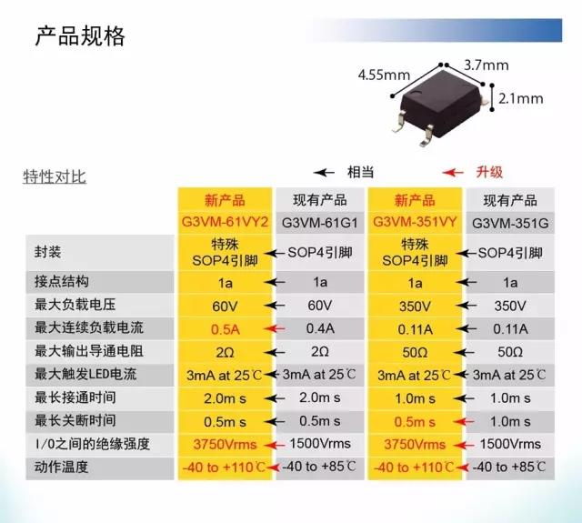 畅销型号G3VM-61G1和G3VM-351G的升级版本。