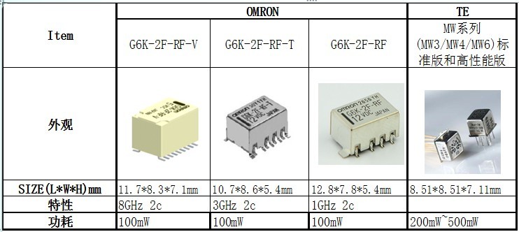 而欧姆龙新出的G6K-2F-RF-V 8Ghz将在特性及性能方面都有明显优势;