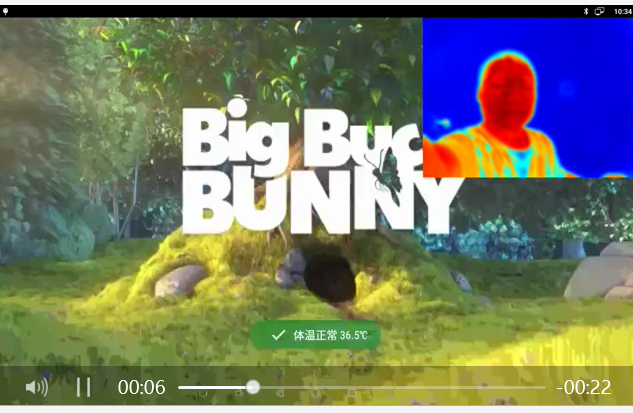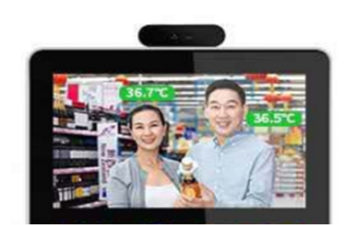 在大屏上安装热成像双光测温模块,直接实现广告播放及多人测温。有人时测温,无人时播放广告。