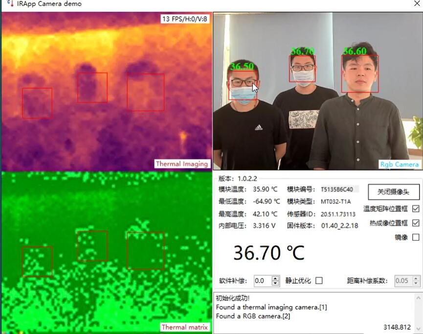 双光测温模组应用十分广泛,比较常见的有体温安检门,人脸识别测温一体机,空调控制,测温模块等。除此之外,在安防和工业领域也有许多应用,如安防生物识别,检测电器运行状态监控,PCB发热,智能楼宇环境检测,水暖电施工、故障排查。如果您注意观察一下周围环境,就会发现红外测温相关应用无处不在。