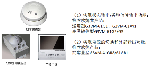 (1)安防设备应用:比如烟雾探测器、人体检测感应器、可视门铃等,继电器在产品上起的作用主要为产品状态指示、控制照明电源切换等。
