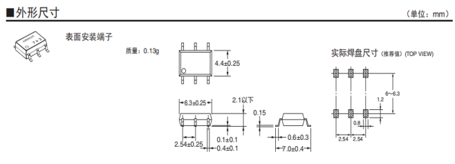 备有高灵敏度,大容量 低导通电阻 低端子间容量,低导通电阻 高绝缘 超小型等