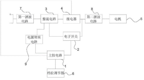 厨师机的驱动电路包括主控电路、电子开关、用于电连接市电的整流电路、与整流电路电连接的继电器和与继电器电连接的电机。