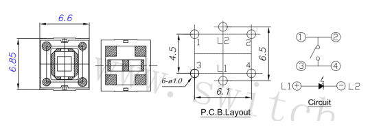 带灯轻触开关,一种带有灯的轻触开关,在没有动作力的时候,开关没有灯的颜色。当有动作力实施的时候,开关就会有相应的颜色。带灯轻触开关有单色灯和双色灯可以选择。LED灯的颜色可以选择红色、橙色、黄色、绿色、蓝色、双色等。一般带灯轻触开关的寿命最低达到10万次,常规的还有20万次寿命、50万次寿命、高寿命也可达100万次。
