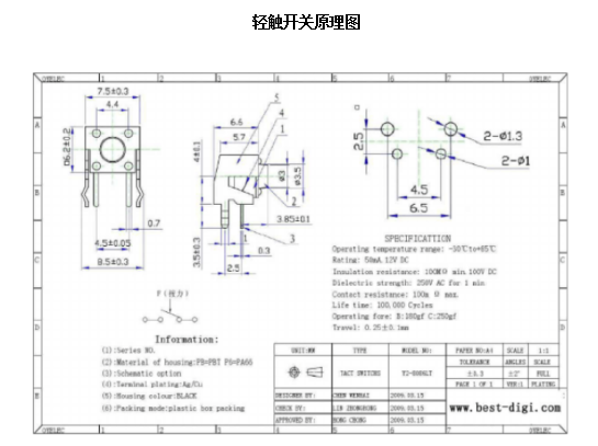 挑选轻触开关方法二:出厂检验的方法和项目也影响最终轻触开关的品质,比如是外观、