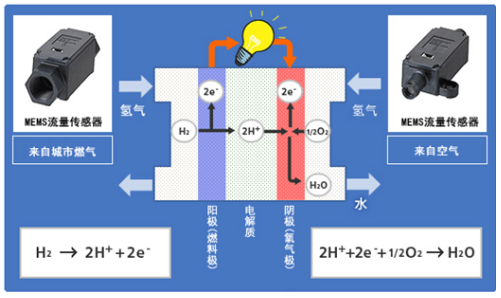 能大限度发挥燃料电池发电效率的高精度MEMS流量传感器,应用气体流量测试技术检测仅为1毫米/秒的气体流量。作为减轻环境负担的新一代燃料电池系统零部件,MEMS流量传感器发挥着重要的作用。 燃料电池的原理就是将城市燃气中含有的氢气与氧气混合在一起,产生化学反应进行发电。为了尽量提高发电效率,需要使氢气与氧气在合适的混合比率的情况下进行燃烧。为了达到这一目的,需要发挥MEMS流量传感器的高精度测试技术。欧姆龙MEMS流量传感器采用超细微加工技术,开发了装配有流速检测元件的MEMS流量传感器。拥有引以为傲的高级别灵敏度,甚至是1毫米/秒的气体流速变化也能精确检测。随着燃料电池的普及,对欧姆龙小型、高性能MEMS流量传感器用途的期待也不断高涨。