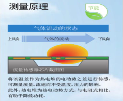 1、高精度测量微流量: 采用温差检测方式,实现±3% F.S.的高精度传感