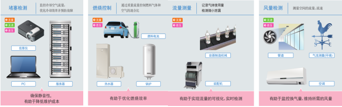 燃气混合比控制、燃气消耗量测量,如:家用燃料电池、热式煤气表、热水器