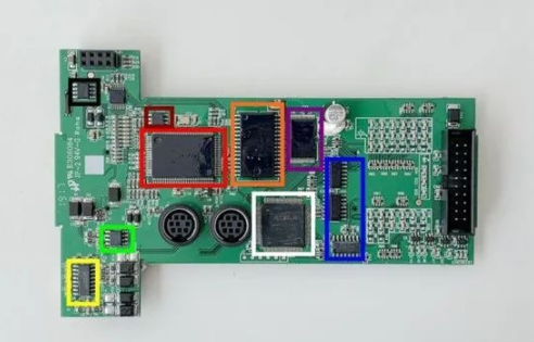 PLC 在 PCB 设计上分为了 3 个板子,从左至右分别为电源板、IO 口板以及主控板。