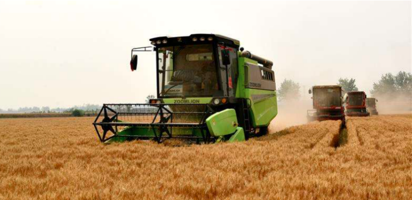 收割机是现代农业中很常见的一体化收割农作物的机械,可以一次性完成收割、脱粒,并将谷粒集中到储藏仓,然后在通过传送带将粮食输送到运输车上,也可用人工收割,将稻、麦等作物的禾秆铺放在田间,然后再用谷物收获机械进行捡拾脱粒。收获稻、麦等谷类作物子粒和秸秆的作物收获机械。包括收割机、割晒机、割捆机、谷物联合收割机和谷物脱粒机等。谷物收获机械是在各种收割、脱粒工具的基础上发展起来的。