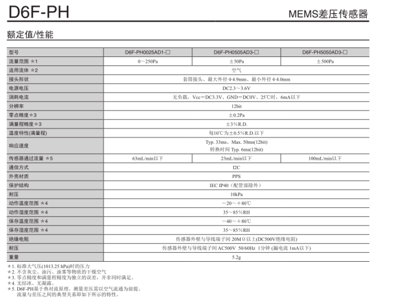 D6F-PH传感器有以下特点: