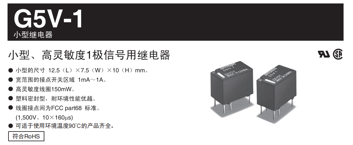 现有厂家常选用OMRON继电器G5V-1系列作为报警输出,性能稳定,品质可靠。产品特点如下:
