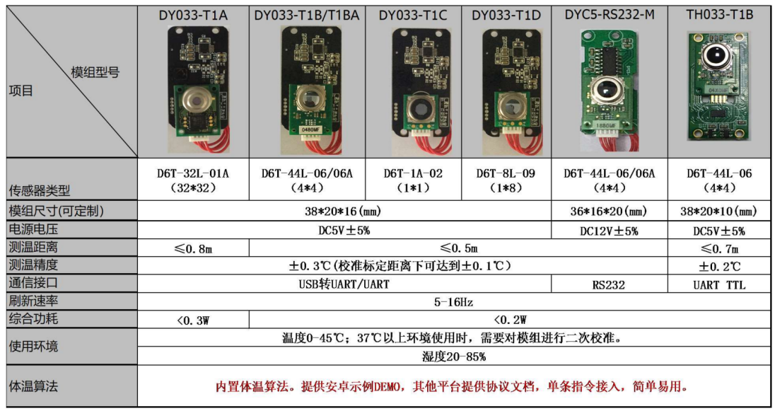 目前市场上比较多的测温产品有:测温机器人、门禁系统、PDA等等。都会涉及到我们的一部分产品,测温机器人由于需要检测的人员及距离较远,多数会选择8064的传感器,能够同时检测多人,有利于快速筛查,门禁系统一般选用32*32的,也有部分客户对性价比要求高的会使用4*4的传感器,PDA产品目前使用单点的传感器较多。