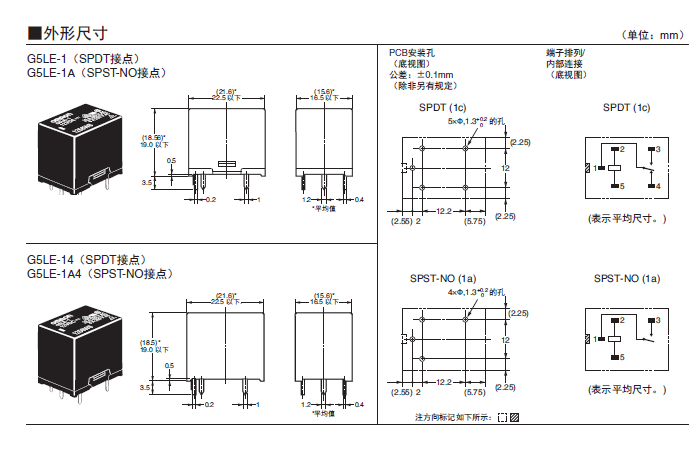 G5LE 印刷基板用功率继电器