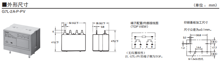 | 2极 | G7L-2A-P-PV | DC12、DC24 | 20个/托盘 |