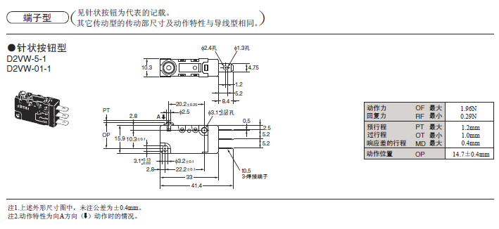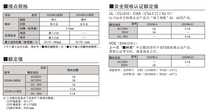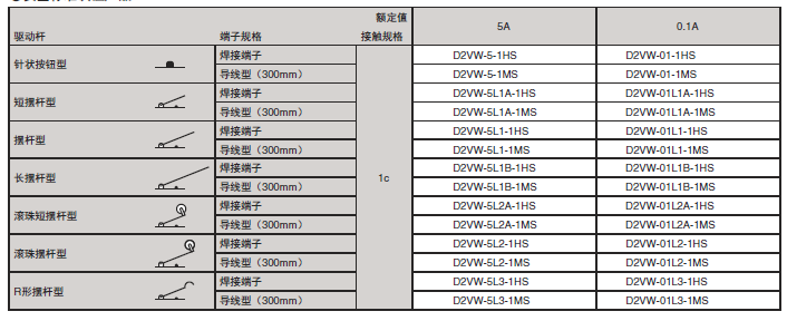 D2VW-5 密封型基本开关 密封型(符合IP67:除端子部 以外)的小型基本尺寸 采用环氧树脂来确保稳定的密封性。可以在会淋水或多尘埃的地方使用。 内部结构采用广受好评的V系列的结构,实现高精度和长寿命。安装也和V系列相同。 可在汽车、农业机械、大型家电、办公设备等有耐环境性要求的场合使用。
