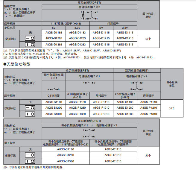 A8GS-C1285远程复位船形欧姆龙开关