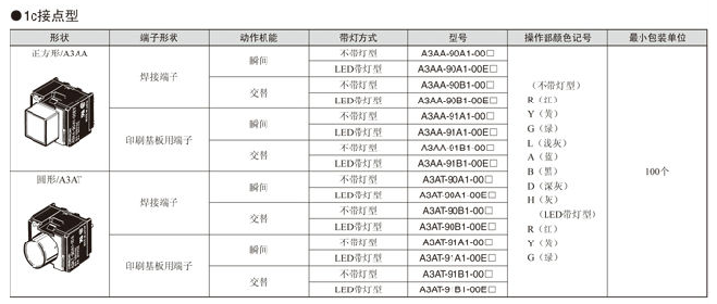 A3A系列 按钮开关 大容量、紧凑型、小型方体型按钮开关