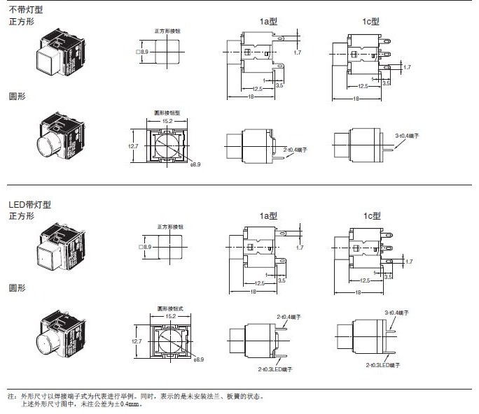 A16□-P 按钮欧姆龙开关(分离式)(带灯·不带灯)(φ16)
