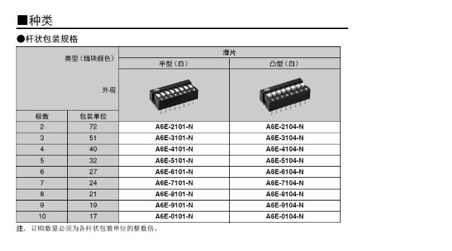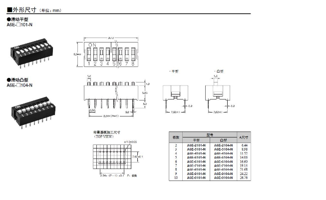 A6E-□104-N 欧姆龙开关 滑动型盒型DIP开关