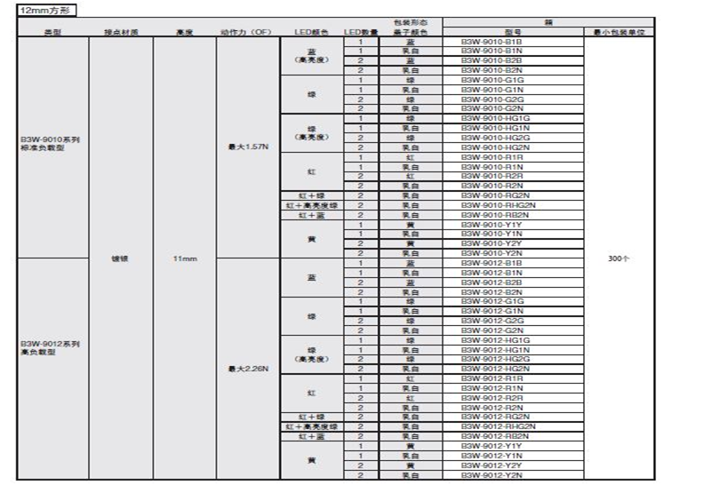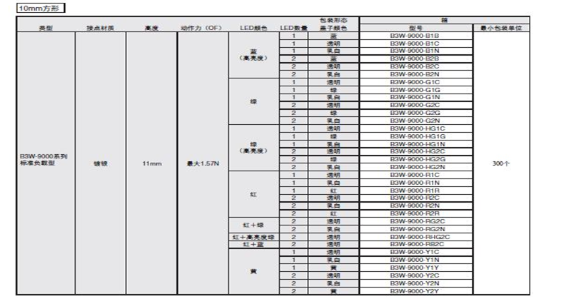 B3W-9000系列 照光式 LED小型带灯轻触开关