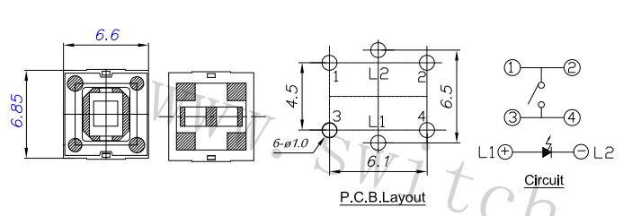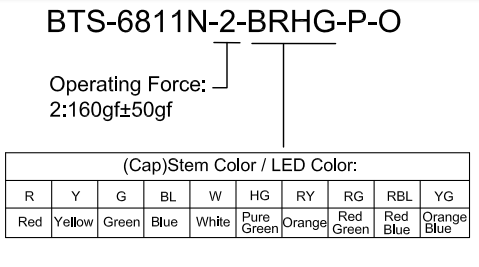 带灯轻触开关BTS-6811N-2-BRHG-P-O