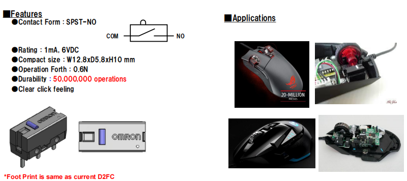 D2FC-F-7N 500万次欧姆龙鼠标开关