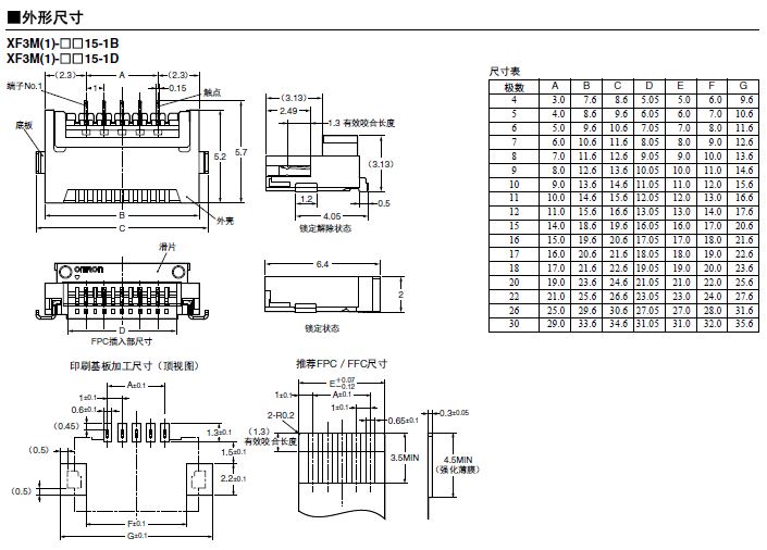 XF3M 旋转后锁结构(端子间距0.5mm、1.0mm、双面触点类型)