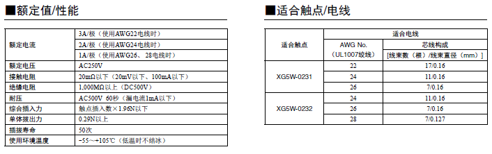 MIL连接器中增加了散线压着型 双槽IDC结构通过采用绝缘柱体实现高可靠性、大电流(3A)散线连接能力。 适用于各种外盖以节省空间和散线终端。 简易锁定摆杆,可与无罩插头XG8B/XG8W(附带右倾型端子)或盒型插头XG4C锁定。 符合UL标准(文件编号:E103202)。(XG5S型除外)