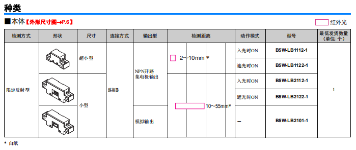 黑色、透明物体反射型传感器B5W-LB1112-1