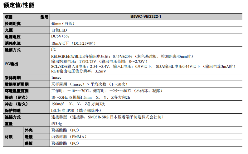 B5WC系列 颜色传感器