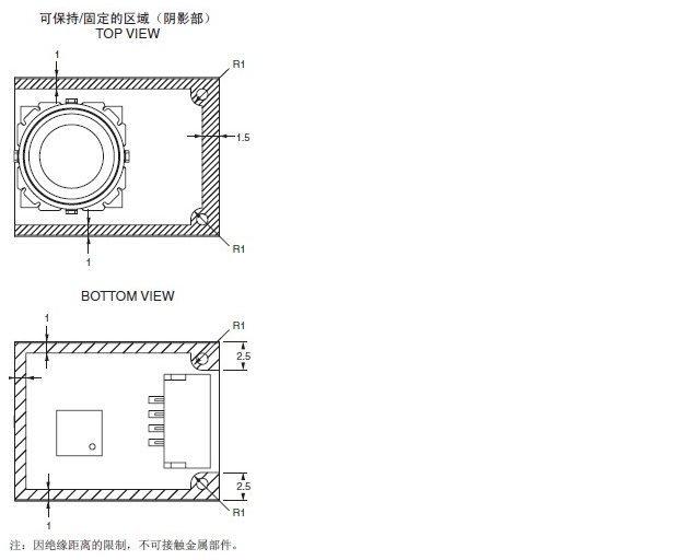 · 不可使用螺钉进行安装。否则会导致基板的保护层剥离。安装时应注意避免保护层剥离。
