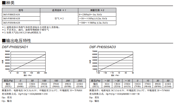 MEMS差压传感器D6F-PH0505AD3