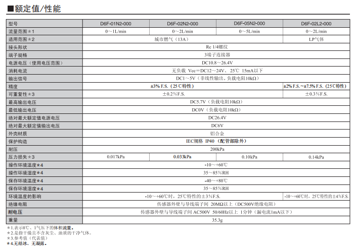 D6F-A7/-N7/-L7燃气流量欧姆龙传感器