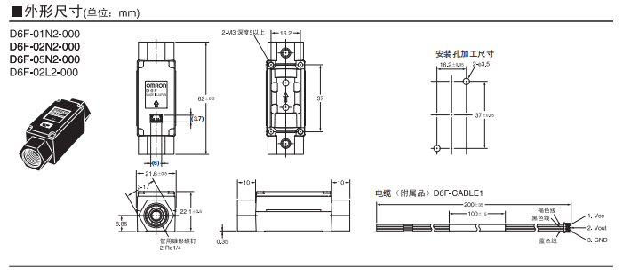 D6F-N2/-L2 高精度流量欧姆龙传感器