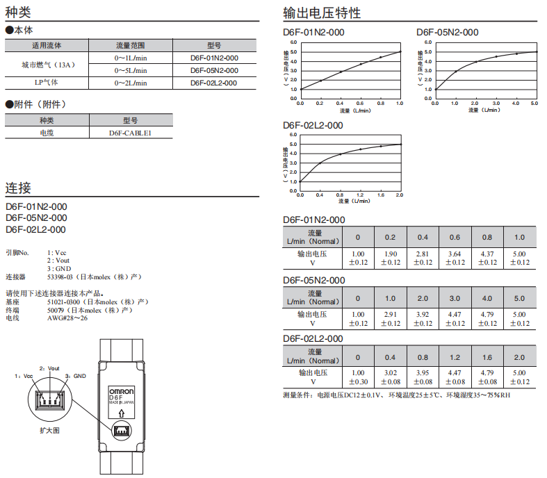 D6F-A7/-N7/-L7燃气流量欧姆龙传感器