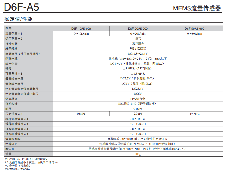 D6F-A7/-N7/-L7燃气流量欧姆龙传感器